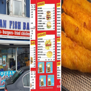 Ocean Fish Bar specializes in fish and chips but also offers a range of kebabs, burgers, sausages, and side orders. There are over 100 menu items to choose from.